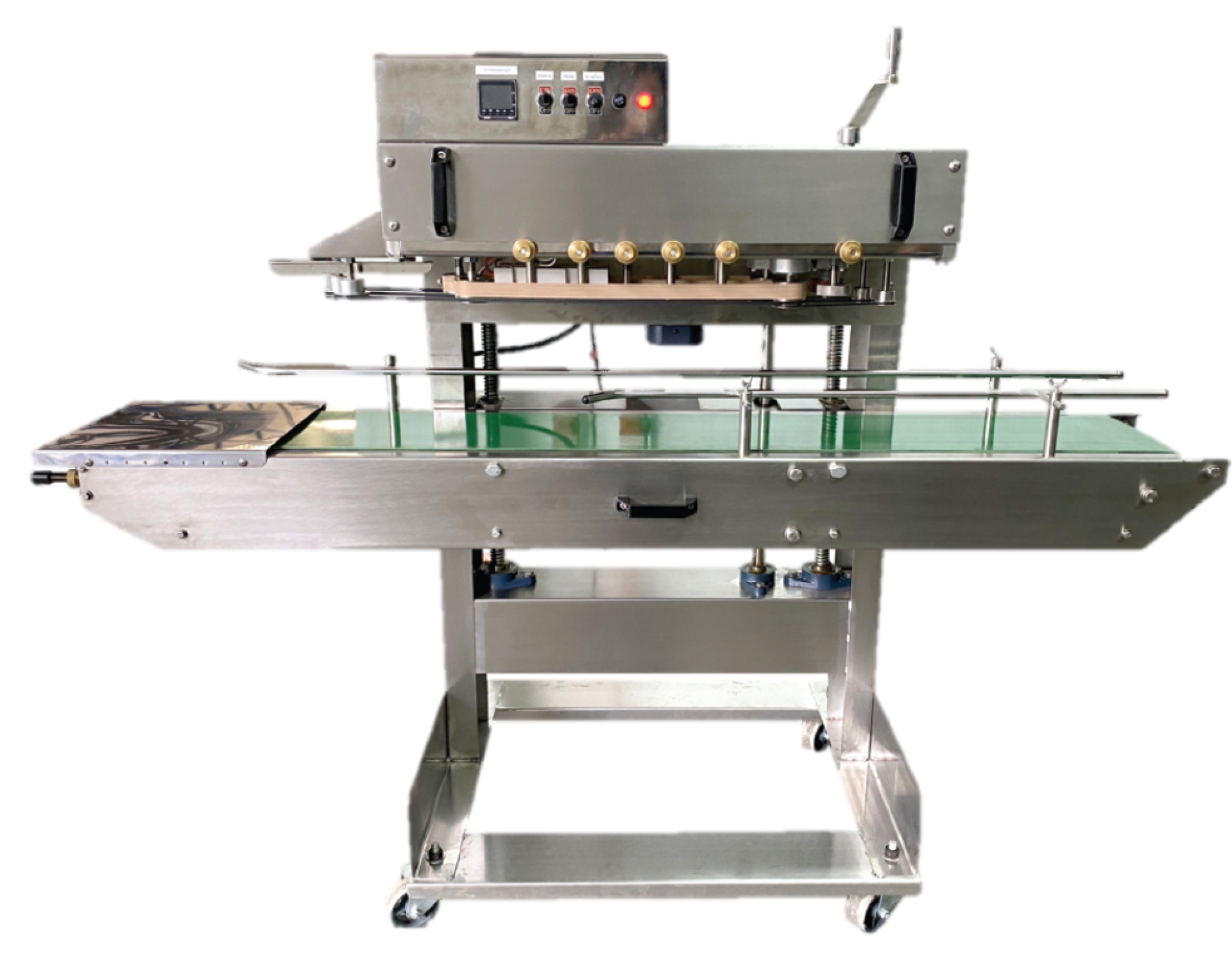 - สายพานสามารถปรับให้สูง-ต่ำเหมาะสมกับตำแหน่งซีล และสามารถเพิ่ม Inverter เพื่อปรับความเร็วสายพาน