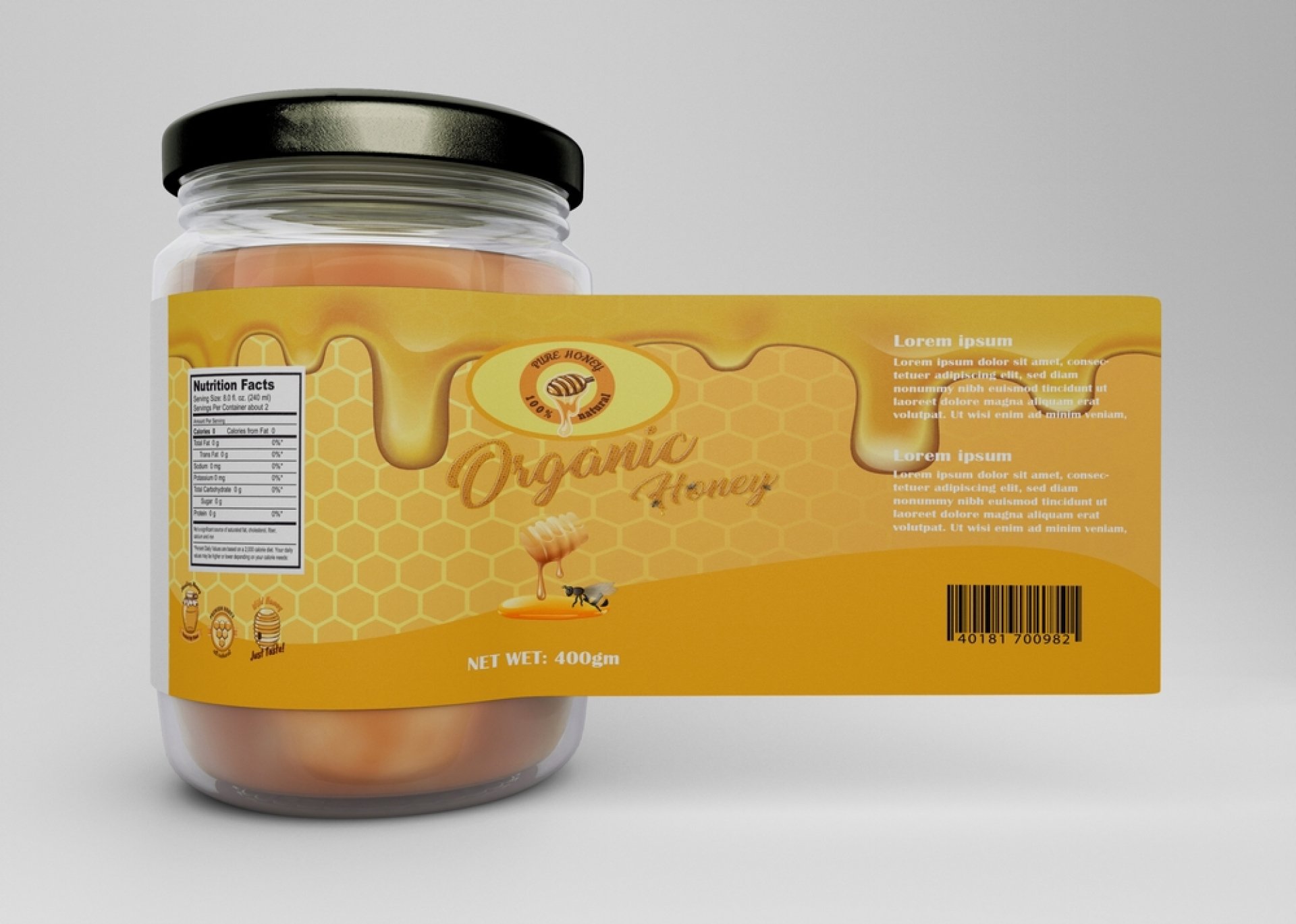 แสดงน้ำหนักหรือปริมาตรสุทธิ เช่น "500 มล." หรือ "1 กิโลกรัม" เพื่อให้ผู้บริโภคทราบว่าได้รับสินค้าในปริมาณเท่าใด - ปริมาณของส่วนผสมต่าง ๆ
