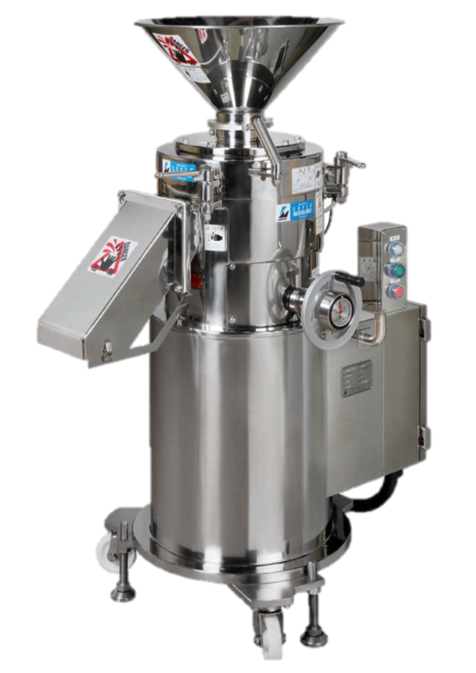 - This machine is capable of grinding materials into a creamy product. It can grind various products such as foods, cosmetics, medicines, chemicals, etc. Particularly in the food industry, it can grind chili paste, chili sauce, seasoning, as well as challenging products like bone pieces, chicken skeletons, and grains.